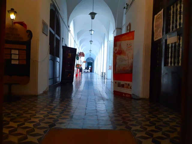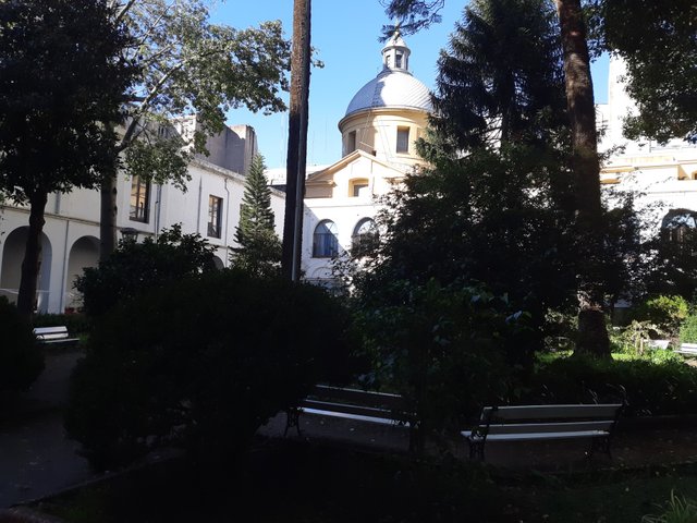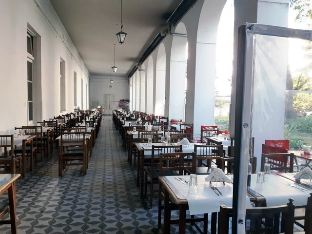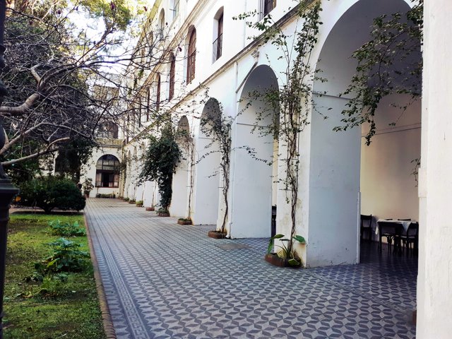 El patio está lleno de frondosos árboles y sendas con bancos de madera, todo el predio rodeado por una galería con acceso a las antiguas aulas, museos y también restaurantes. Si, en algún momento parte del espacio comenzó a utilizarse para brindar servicios de comida a una gran cantidad de gente que trabaja en esta zona, hoy en día dos restaurantes muy bien conceptuados ofrecen platos de muy buena calidad y presentación.